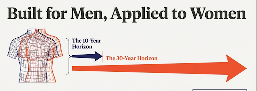 This is the piece that is especially relevant during the menopause transition. This is the period when often body composition shifts, blood pressure rises, lipids worsen, symptoms change, and the gap between apparent health (existing risk calculators) and actual (lifetime risk and additional biomarker considerations) risk classification can widen.