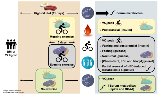 Fig: Morning versus evening cycling on metabolic markers in overweight and obese men. Source: [4]