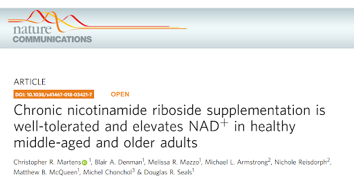 [9] C. R. Martens et al., ‘Chronic nicotinamide riboside supplementation is well-tolerated and elevates NAD+ in healthy middle-aged and older adults’, Nat. Commun., vol. 9, no. 1, p. 1286, Mar. 2018, doi: 10.1038/s41467-018-03421-7.